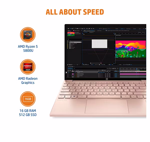 The HP Pavilion Aero 13-be0205AU* Ryzen 5-5600U / 16GB / 512 GB SSD / 13.3 WQXGA (2560x1600) Antiglare 400 nits IPS Narrow Border / AMD Radeon Integrated Graphics / Windows 11 Home + MSO H & S 2019 / Pale Rose Gold +MAG C-deck - FPR, 970 gms is engineered to provide exceptional performance, whether for gaming, work, or entertainment. Its powerful specifications and premium design make it a top choice for professionals and enthusiasts alike.