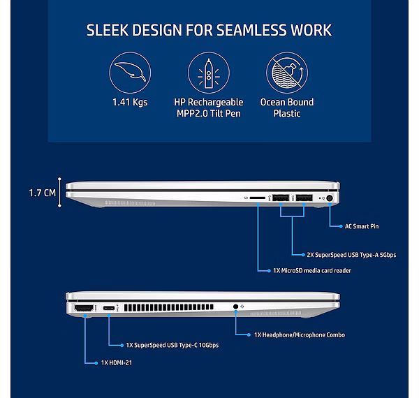 The HP Pavilion PLUS 14-eh0024TU Laptop | Core i7-12700H | 16GB | 1 TB SSD | Intel Iris Xe | Win 11 MSO H & S 2021 | 5 MP Camera + USB C-Type charging Port + Natural Silver + EyeSafe Display + TNR + Alexa Built-in | 14 2.8K (2880x1800) | 1 year onsite warranty | 6Q158PA is engineered to provide exceptional performance, whether for gaming, work, or entertainment. Its powerful specifications and premium design make it a top choice for professionals and enthusiasts alike.